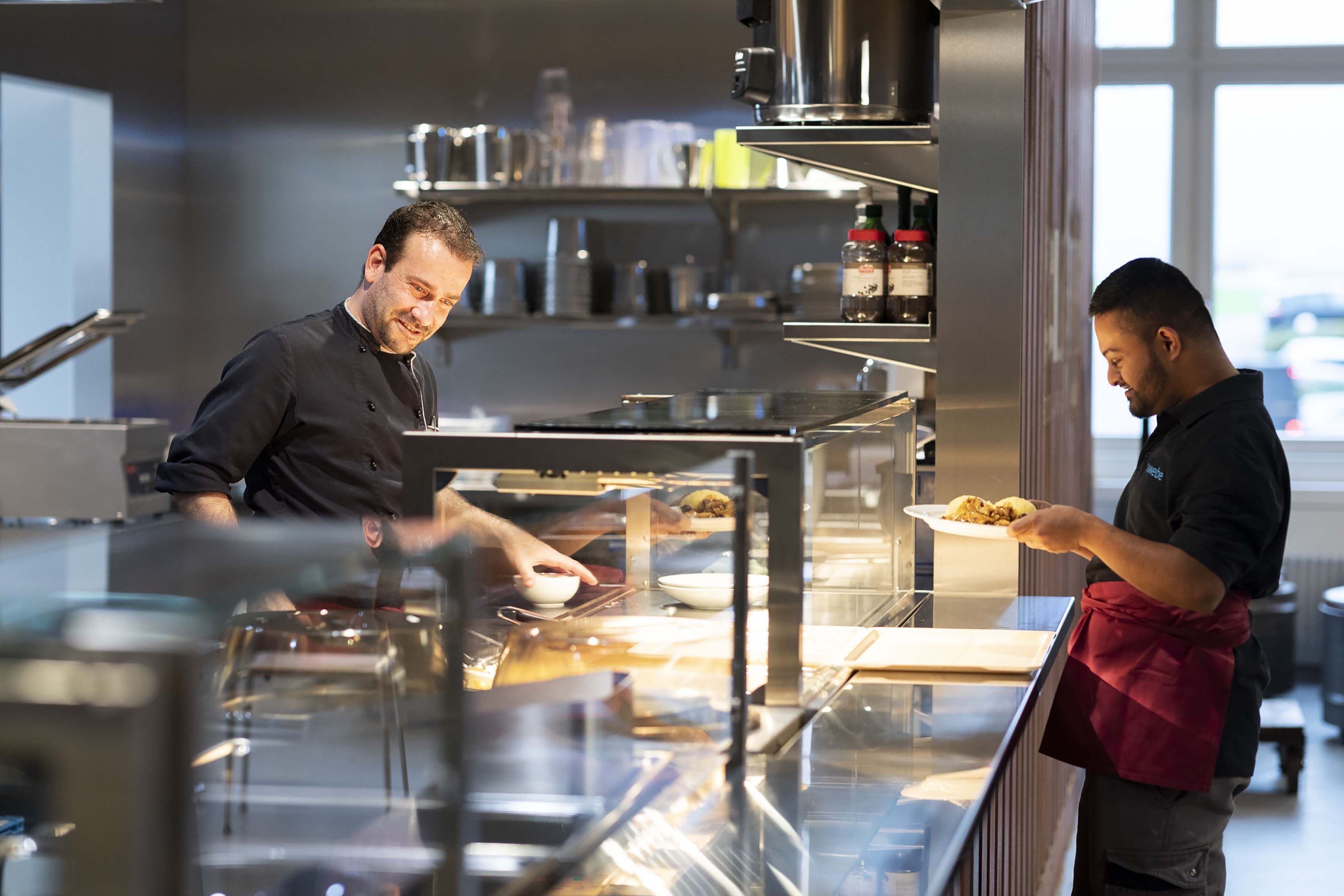 In der Schlosserei kochen wir für unsere Mitarbeitenden am Standort Bösch in Hünenberg sowie für externe Gäste. Unser Restaurant bietet Platz für 120 Gäste und ist jeweils von Montag bis Freitag geöffnet.