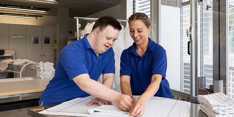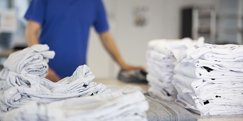 In unserer Wäscherei drehen sich die Waschmaschinen rund um die Uhr, Tag für Tag. Insgesamt waschen wir über 120 Tonnen Wäsche pro Jahr! Neben der internen Wäsche aus dem Arbeits- und Wohnbereich der Stiftung zuwebe sorgen wir auch bei externen Kundinnen und Kunden für saubere Berufswäsche.