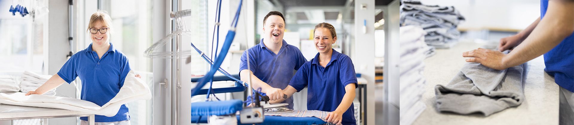 - Wir arbeiten sozial - durch den Einsatz von Geräten wie Dampfbügelautomaten können selbst feinmotorisch eingeschränkte Personen Blusen und Hemden knitterfrei aufbereiten.